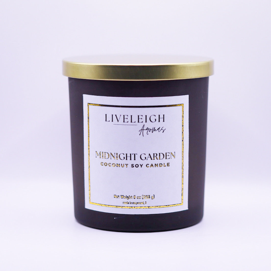 Crafted with precision and care, our Midnight Garden Coconut Soy Candle features a high-quality coconut soy wax blend, ensuring a clean and even burn. The luxurious glass container adds a touch of elegance to any space.