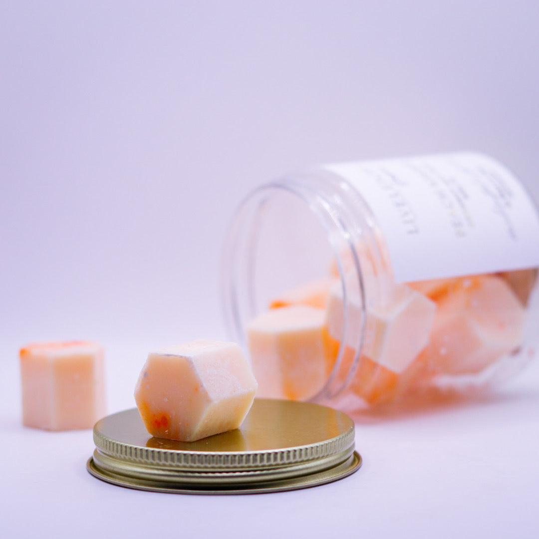 Made with care, our Peach Kisses Coconut Soy Wax Melts are crafted from a luxurious blend of natural coconut and soy wax. This combination ensures a clean and long-lasting melt, allowing you to enjoy the captivating fragrance for hours on end.